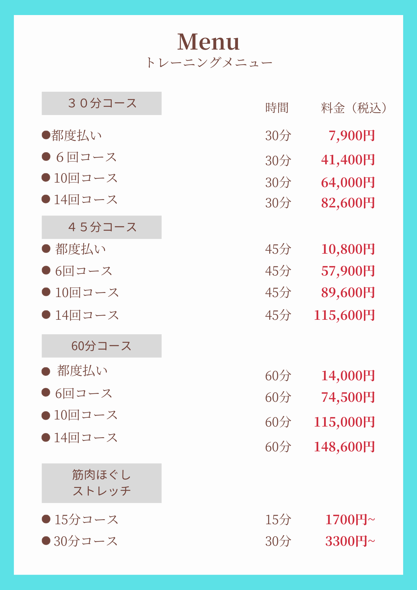 (最終受付:21:00) 土曜日 祝日 9:00~20:00 (最終受付:19:00) 日曜日 9:00~18:30 (最終受付:17:30) |